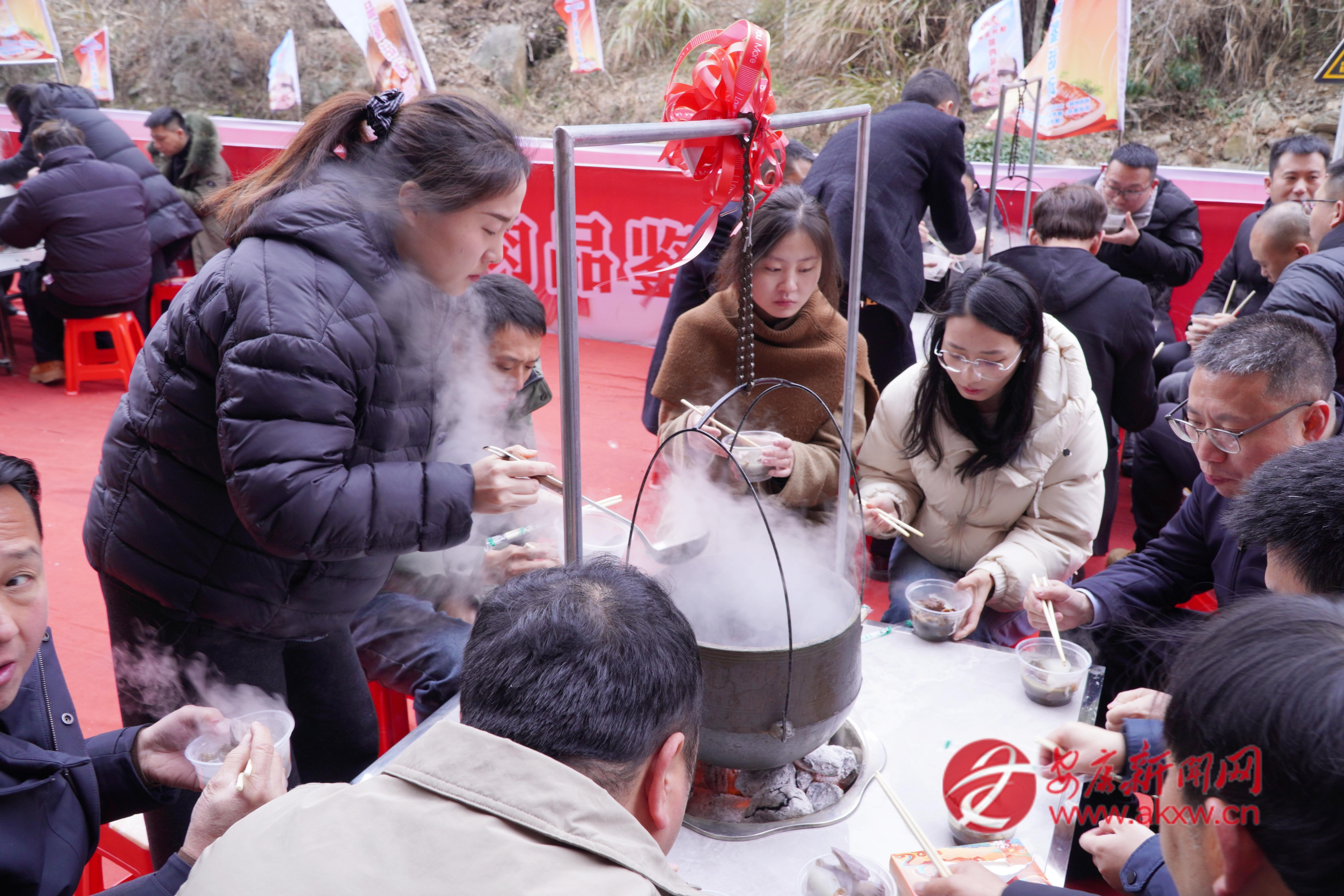 活動(dòng)現(xiàn)場(chǎng),一口巨型大鐵鍋格外引人注目,它可以燉500斤肉,可供1000人同時(shí)品嘗鎮(zhèn)坪富硒臘肉。同時(shí),20個(gè)吊鍋中,臘肉與香菇、竹筍、干洋芋果果一同燉煮,香氣四溢,讓人垂涎欲滴。賓客們圍坐一起有說(shuō)有笑,品嘗著可口地道的鎮(zhèn)坪臘肉,不僅是一場(chǎng)臘肉美食的集會(huì),更是一種非遺技藝的傳承?!霸缇吐?tīng)說(shuō)陜南鎮(zhèn)坪的富硒臘肉有名,這次專程趕來(lái),就為這一口地道的臘味,品嘗后覺(jué)得這臘肉的味道太美了!”在活動(dòng)現(xiàn)場(chǎng),一位來(lái)自西安的游客李先生在品嘗鎮(zhèn)坪臘肉后高興地說(shuō)道。