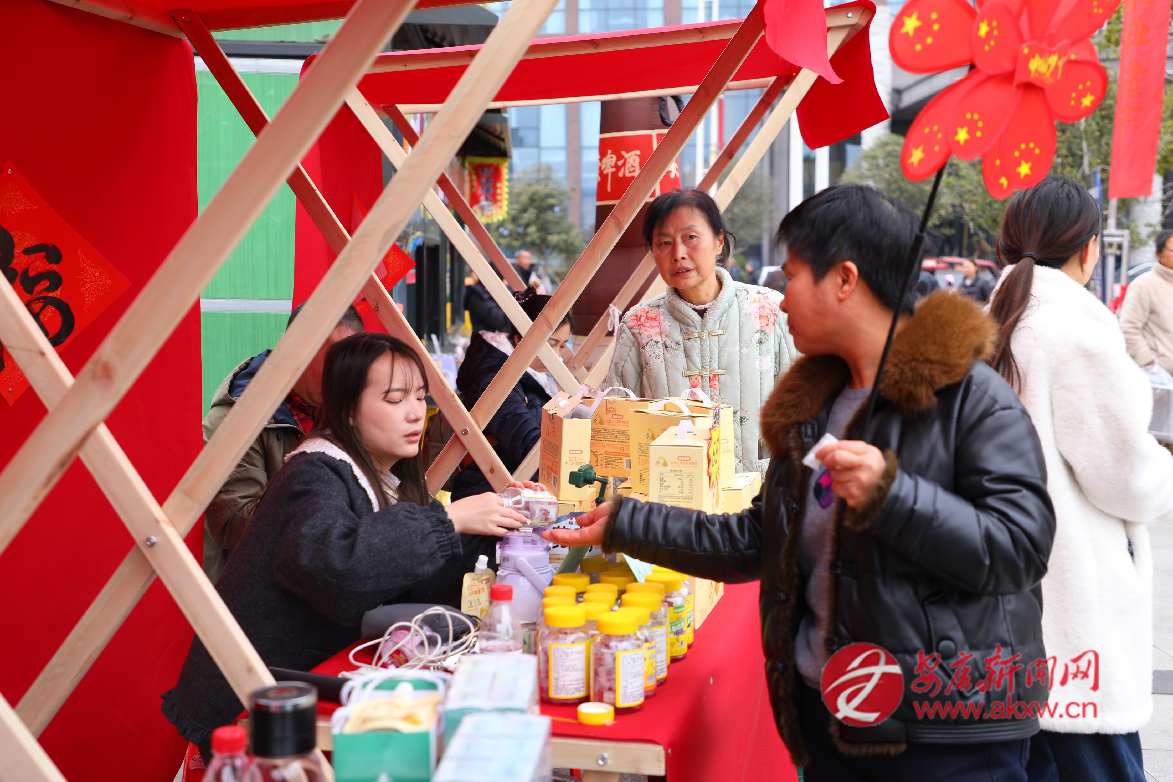 舞臺之上好戲連臺,集市之中更是熱火朝天。年貨展銷區(qū)內攤位林立、人潮涌動,20余家企業(yè)帶來的安康富硒茶、紅薯粉條、木瓜飲、土蜂蜜、黃連牙膏等安康特色產(chǎn)品琳瑯滿目,讓人目不暇接?!奥犃藬傊髦v解茶山生態(tài)和制茶工藝,感覺買得特別踏實,帶回去自己喝或當作新年伴手禮都合適,能實實在在支持本地茶農(nóng),這年貨買得暖心又有意義?!笔忻窳蜗壬嶂鴦傎徣氲牟枞~笑著說。