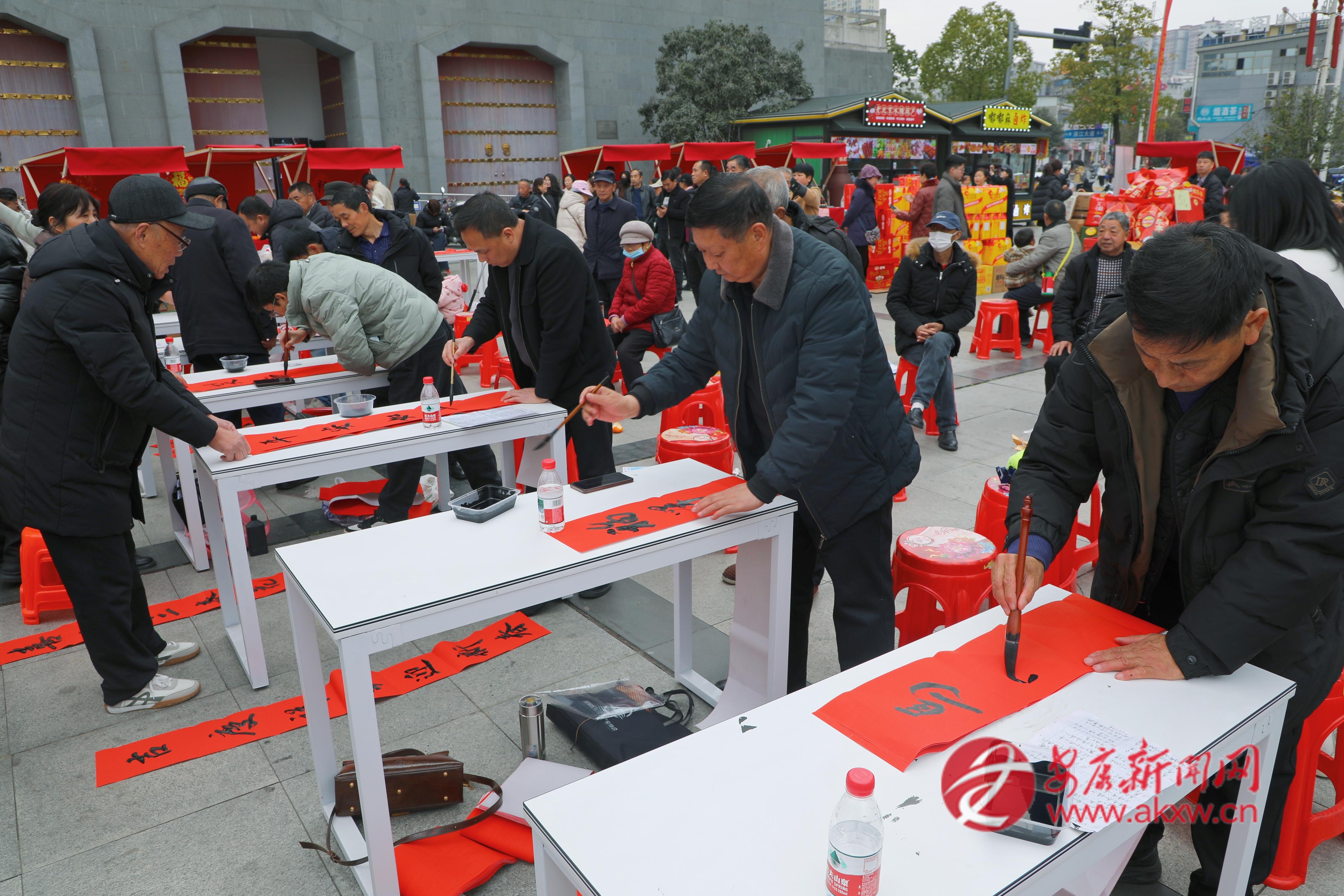 活動開場,鏗鏘的舞獅表演點燃全場熱情,漢調二黃盡顯秦巴韻味,嘹亮的歌唱與精妙的川劇變臉輪番上演,獨具特色的文藝演出贏得市民群眾陣陣掌聲,其間的抽獎活動與趣味娛樂環(huán)節(jié),吸引市民沉浸式參與其中,更是將節(jié)日的歡樂氛圍推向高潮。另一邊,市文化產(chǎn)業(yè)協(xié)會的書法家們揮毫潑墨,一副副喜慶的大紅春聯(lián)、一張張吉祥的福字帶著墨香送到群眾手中。