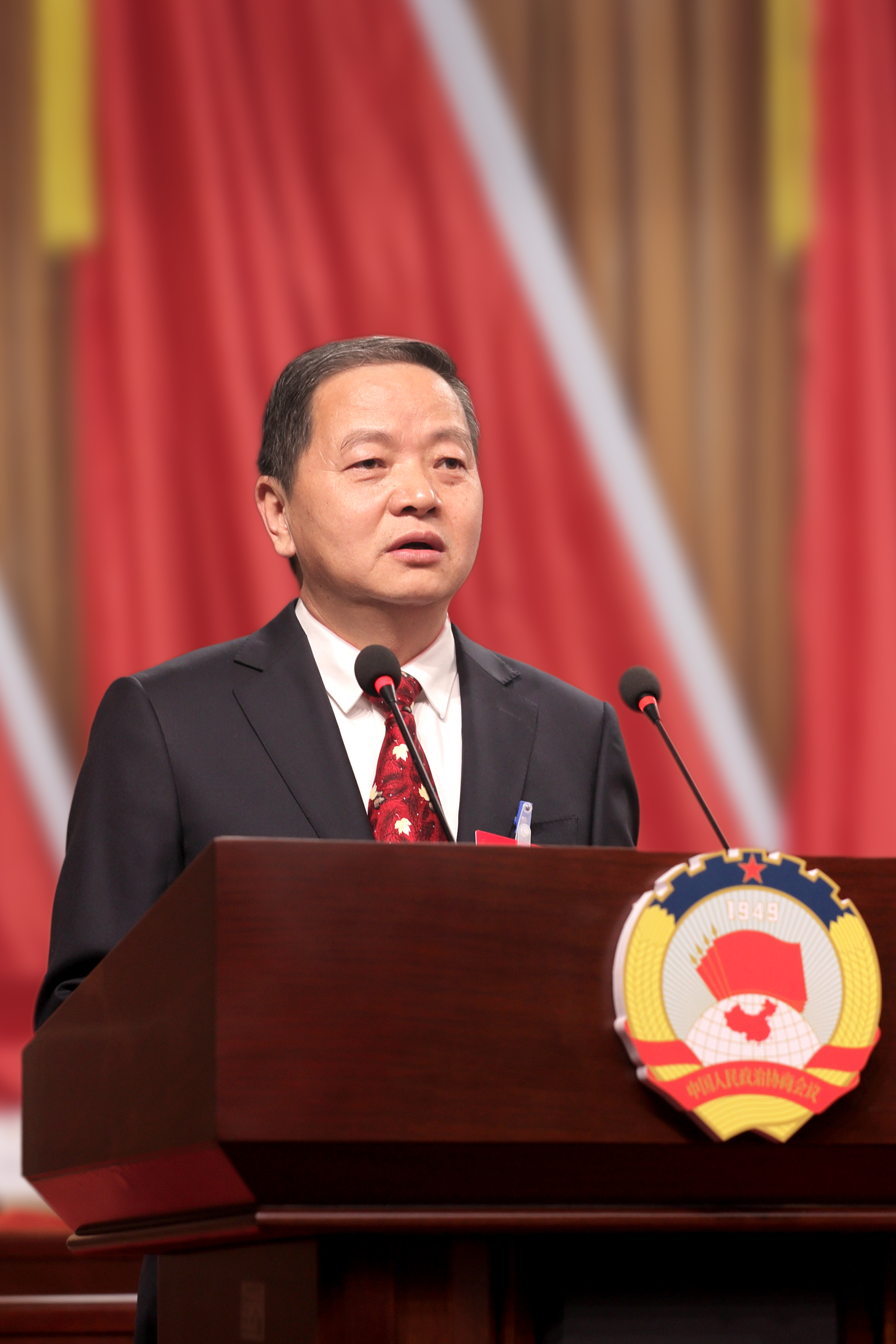 市政協(xié)主席周建功代表政協(xié)安康市第五屆委員會常務委員會作工作報告。記者 潘潤生 攝