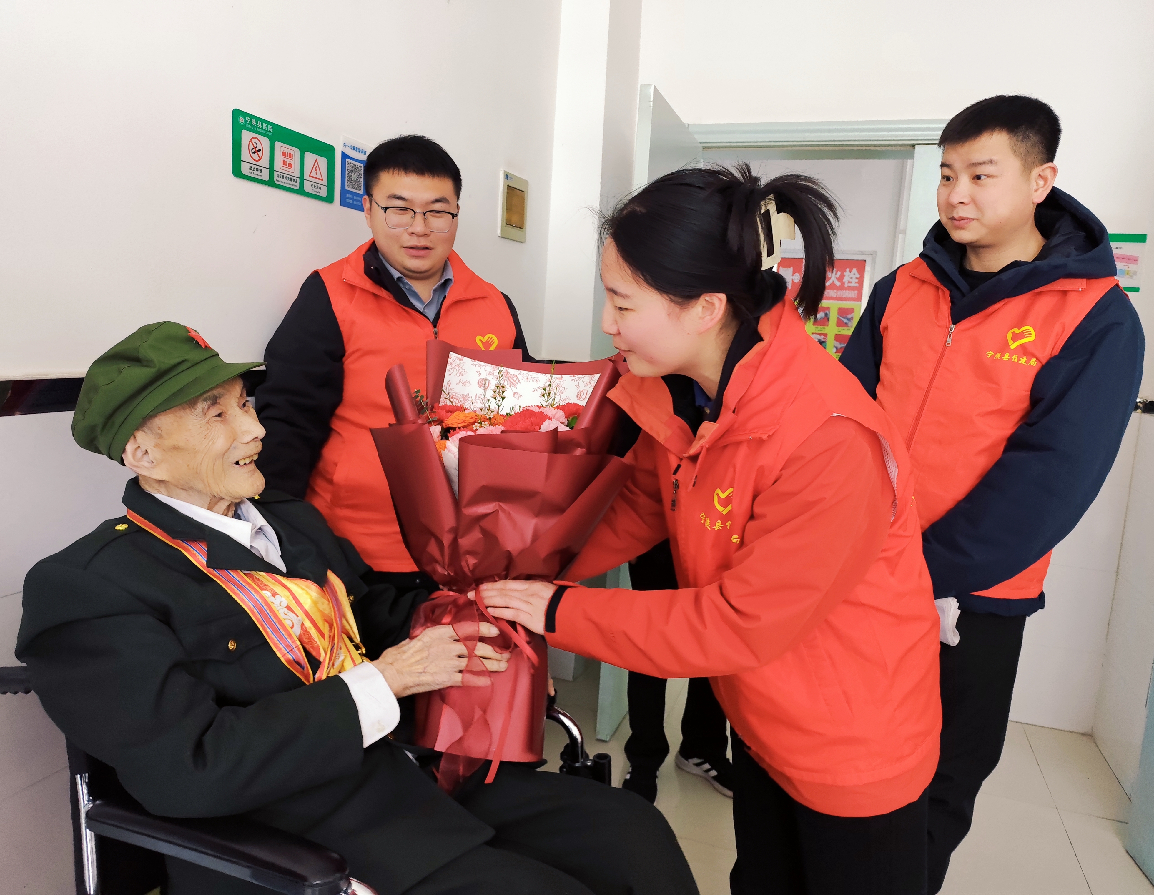 活動現場暖意融融,志愿者圍在老人身邊,促膝長談、噓寒問暖,細心詢問其飲食起居和身體狀況,認真傾聽那段浴血奮戰(zhàn)的革命故事。“老人飲食清淡,精神狀態(tài)一直很好。”護理人員李娟介紹,老人性格開朗,時常給大家講述戰(zhàn)場事跡,傳遞著滿滿的正能量。