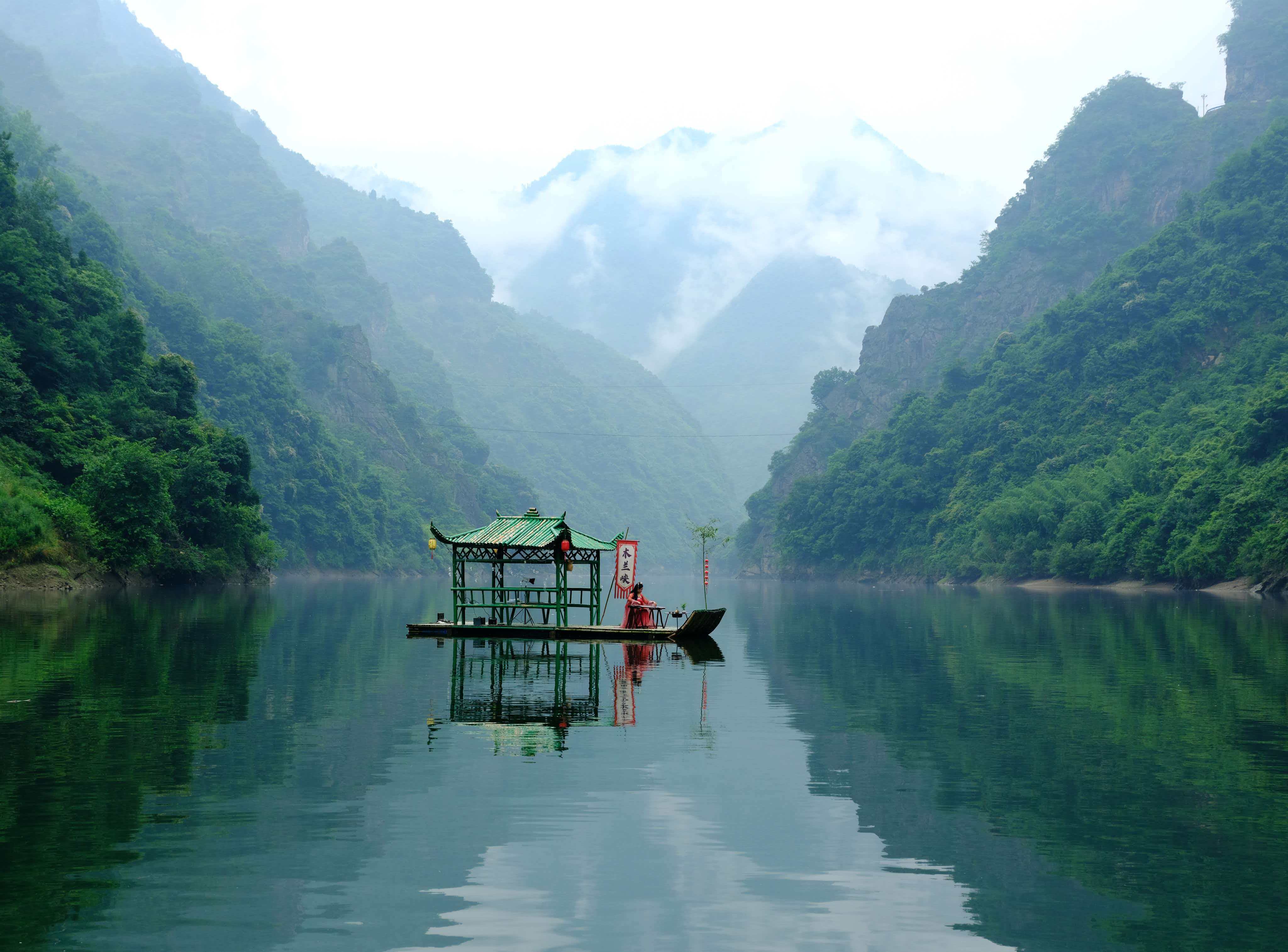 2012年夏天,我陪客人走進(jìn)毛壩鎮(zhèn)。朋友做向?qū)В@才第一次見(jiàn)識(shí)了木蘭峽,紫陽(yáng)的深山里,原來(lái)藏著這般景致。峽水幽幽,綠得深沉,不起一絲波瀾。小船行在水上,像是劃破了一匹綠綢子;又像是根本沒(méi)動(dòng),只靜靜地浮著,浮在一整個(gè)下午的光陰里。兩岸奇峰默然對(duì)峙,滿坡蓊蓊郁郁,盡是些叫不出名字的樹(shù)木。偶爾有野山羊從崖邊下來(lái),到峽邊低頭喝水,見(jiàn)了人也不是很怕。峽的盡頭,一段古纖道斜斜地臥在峽邊,石頭上還留著當(dāng)年的鑿痕。不遠(yuǎn)處立著一塊清代道光年間的石碑,上面的字跡雖已模糊,卻仿佛還在那里,低聲訴說(shuō)著從前的熱鬧。