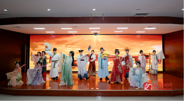 花枝映雅韻,羅衣展風(fēng)姿。活動現(xiàn)場,女員工們褪去職業(yè)裝,換上襦裙、曲裾等各式漢服,簪花綰發(fā)、輕搖團扇,一顰一笑間皆是溫婉雅致。伴隨著悠揚的古樂,一場精心編排的漢服秀驚艷開場,女職工代表緩步登臺,或頷首低眉、或淺笑嫣然,在詩詞誦讀的映襯下,將中華傳統(tǒng)服飾的典雅之美演繹得淋漓盡致?!敖韼讲蛔岉毭?,須眉亦懷雅意”,更令人驚喜的是,四位男士代表身著儒巾青衫現(xiàn)身助陣,平日里雷厲風(fēng)行的他們,化身謙謙君子,步履從容間盡顯儒雅風(fēng)范,現(xiàn)場掌聲與歡笑聲此起彼伏。