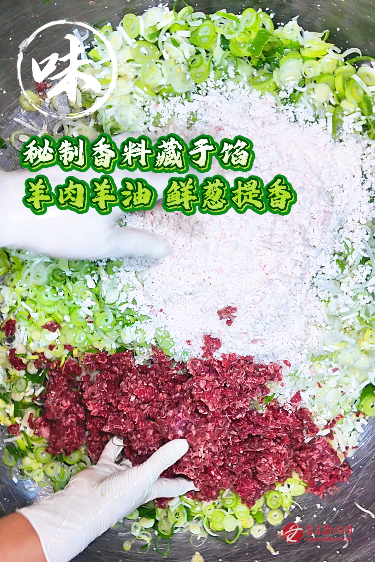 再是做油酥。抓一把面粉,擱碗里,加鹽、五香粉,用滾沸的熟油潑進去,筷子急急地攪。那面在油里嗞嗞地響,漸漸融成濃稠的一團。這油酥,是餅子起層的秘密。還有餡料。羊肉選用本地的羊,肉切成小小的丁。太肥了不行,須得瘦肉多一些,得加些羊脂丁,那樣煎出來才潤,才有汁水。蔥花要多,要本地的蔥,切得碎碎的,拌上鹽、花椒粉、五香粉。有的還加焙香的苜蓿末,黃黃的,有股子清野的氣味。