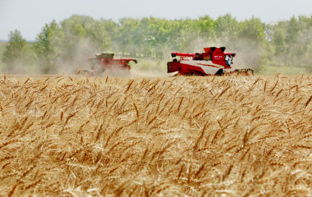2025年8月5日,位于黑龍江省五大連池市的大慶油田農(nóng)場調(diào)動(dòng)多臺(tái)聯(lián)合收割機(jī)搶收小麥。新華社發(fā)(陸文祥 攝)