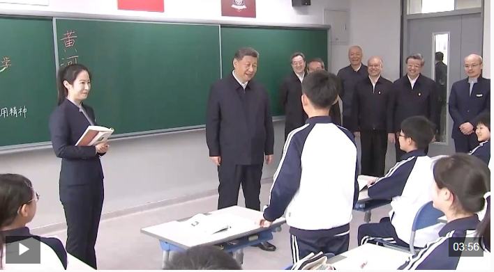 初一(2)班,一堂語文課正在進行中。習(xí)近平總書記走進這間教室,同師生交談,了解教學(xué)情況。