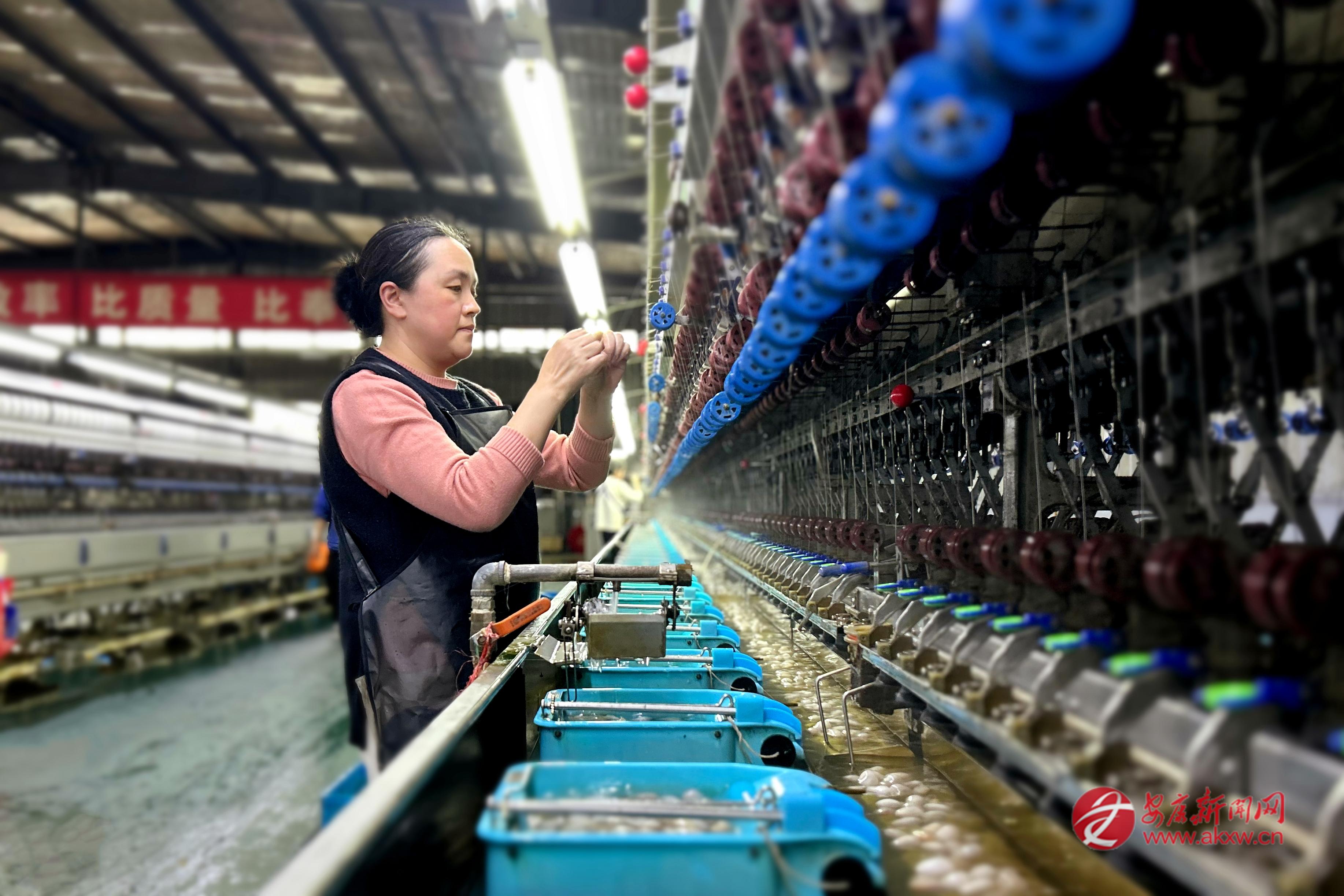 “今年國(guó)內(nèi)高端家紡市場(chǎng)需求旺盛,訂單一直很充足?!逼髽I(yè)負(fù)責(zé)人孫浩勇介紹,依托本地優(yōu)質(zhì)蠶繭,企業(yè)滿負(fù)荷生產(chǎn)。同時(shí),通過“企業(yè)+合作社+農(nóng)戶”利益聯(lián)結(jié)機(jī)制,天成絲業(yè)與數(shù)千戶蠶農(nóng)簽訂保底收購協(xié)議,提供全流程服務(wù),實(shí)現(xiàn)企業(yè)增效、蠶農(nóng)增收。
