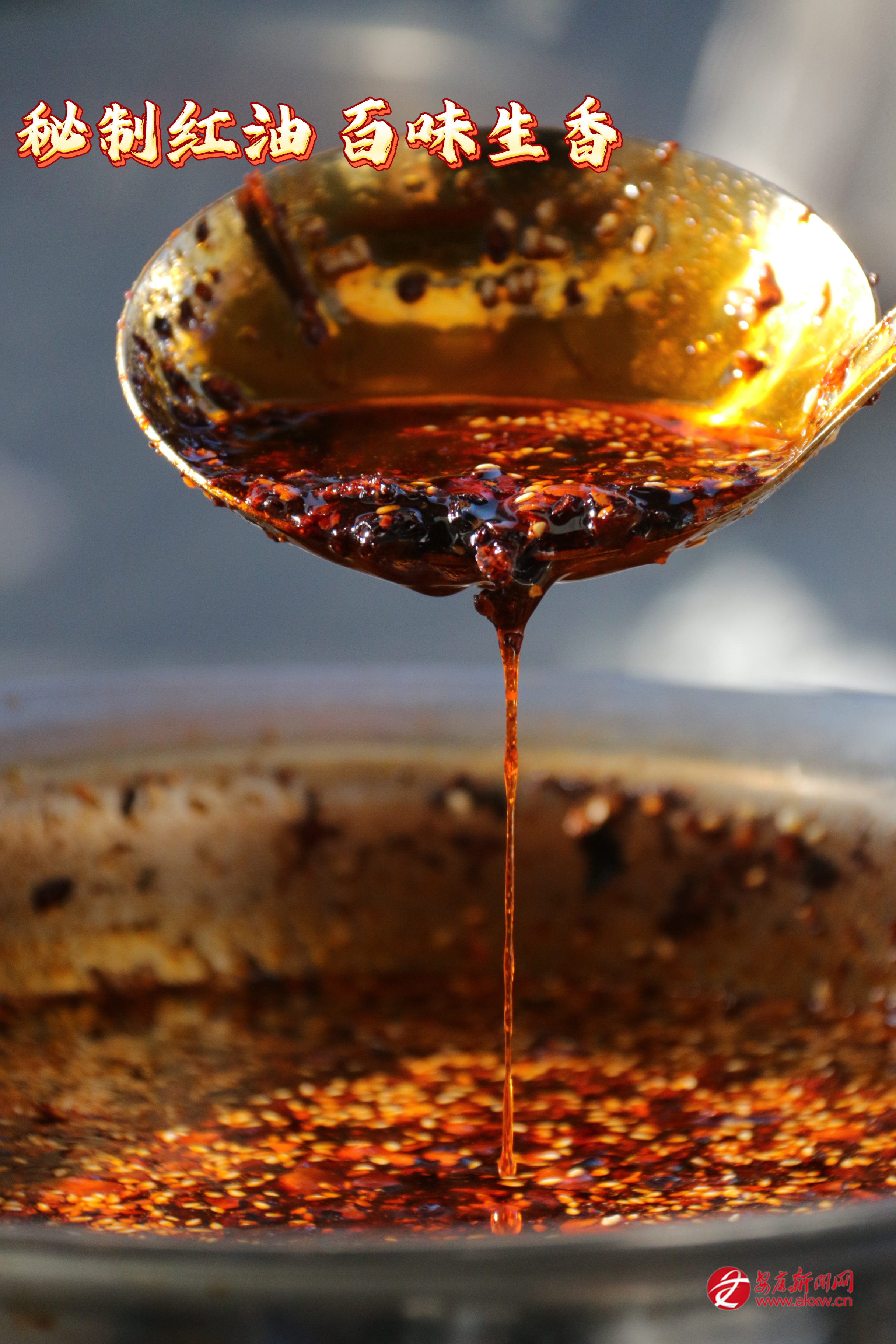 安康的油潑辣子,是專門做過的。辣椒面兒要細,要用本地的好辣椒。油要燒得滾燙,潑上去,嗞啦一聲,焦香就出來了。里頭還加各種香料——花椒、八角、草果、桂皮,各家有各家的秘方,不輕易告訴人。這一碗辣子,紅亮亮的,香氣濃得化不開。