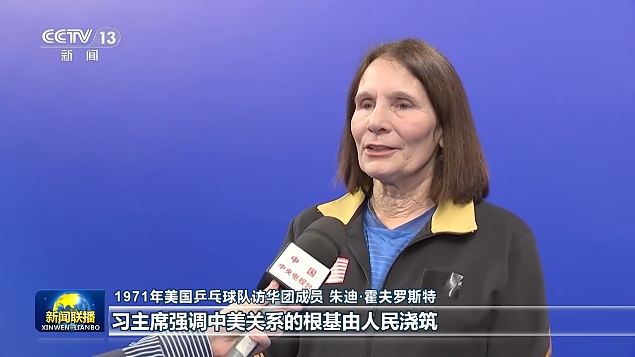 1971年美國乒乓球隊(duì)訪華團(tuán)成員 朱迪·霍夫羅斯特:習(xí)主席強(qiáng)調(diào)中美關(guān)系的根基由人民澆筑,這一點(diǎn)我深有感觸。在當(dāng)下,相互理解與對(duì)話比任何時(shí)候都更加重要,我也希望我們能將“乒乓外交”精神繼續(xù)傳承,在兩國人民間傳遞溫情,增進(jìn)理解。