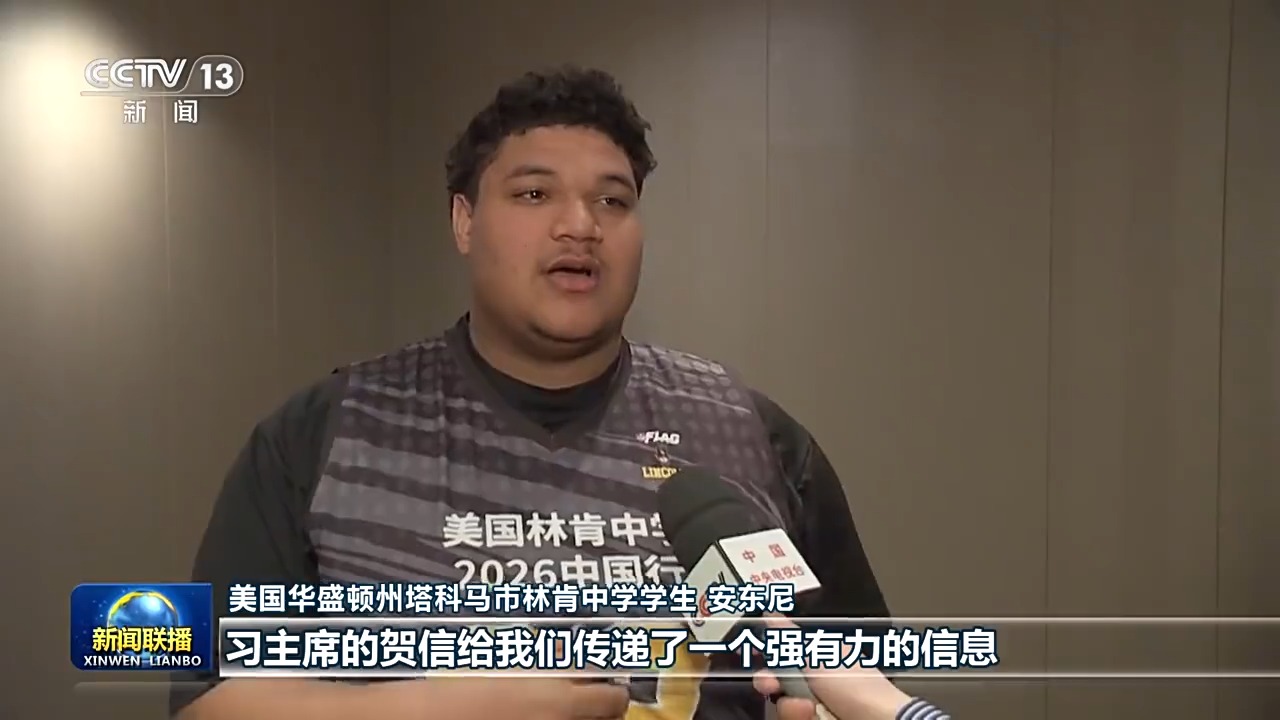 美國華盛頓州塔科馬市林肯中學(xué)學(xué)生 安東尼:習(xí)主席的賀信給我們傳遞了一個(gè)強(qiáng)有力的信息,讓我們堅(jiān)信彼此學(xué)習(xí)、相互理解就能讓人心貼得更近。我要把我親身體驗(yàn)所經(jīng)歷的一切,把我看到的真實(shí)的、充滿活力的中國,講給我家鄉(xiāng)的朋友們聽。