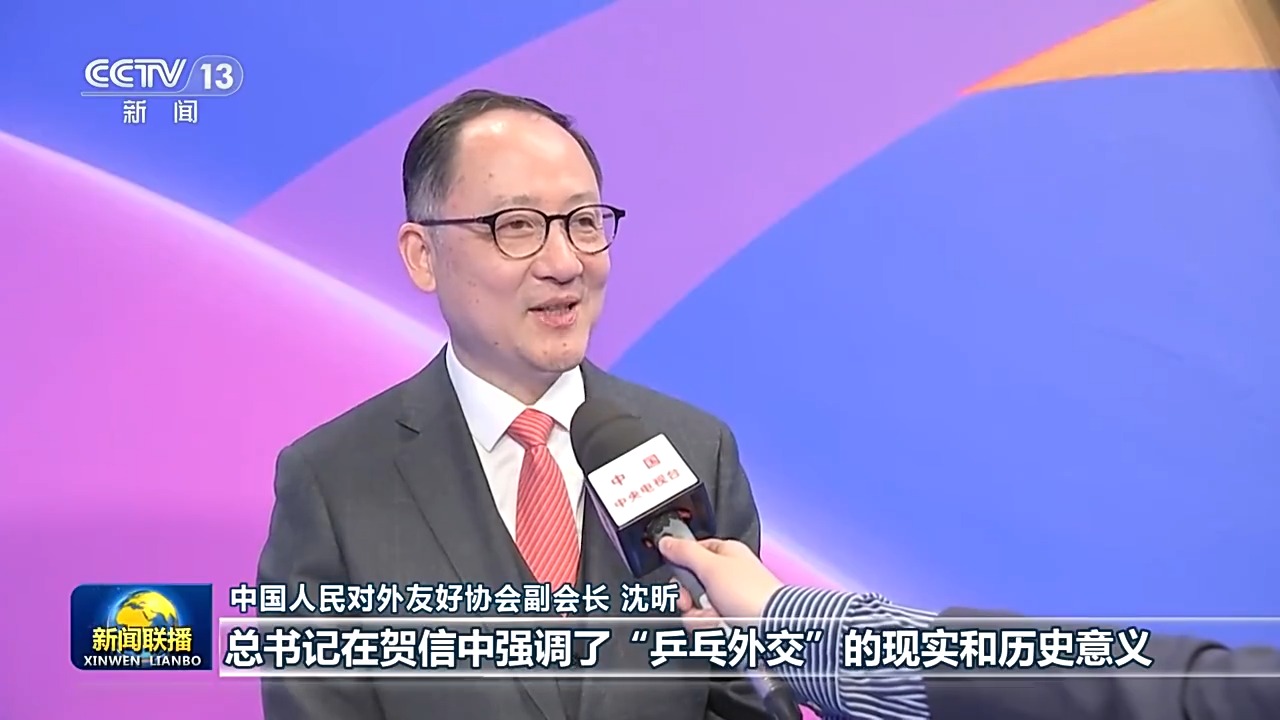 中國人民對(duì)外友好協(xié)會(huì)副會(huì)長 沈昕:總書記在賀信中強(qiáng)調(diào)了“乒乓外交”的現(xiàn)實(shí)和歷史意義,特別鼓勵(lì)兩國的青年一代他們要相知相親、攜手同行,這對(duì)中美兩國的民間交往是一個(gè)巨大的推動(dòng),也注入了溫暖的能量。