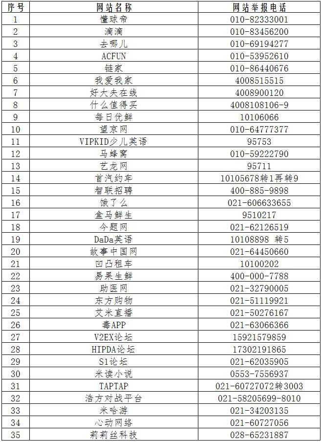 第六批520家網(wǎng)站公布舉報(bào)受理方式